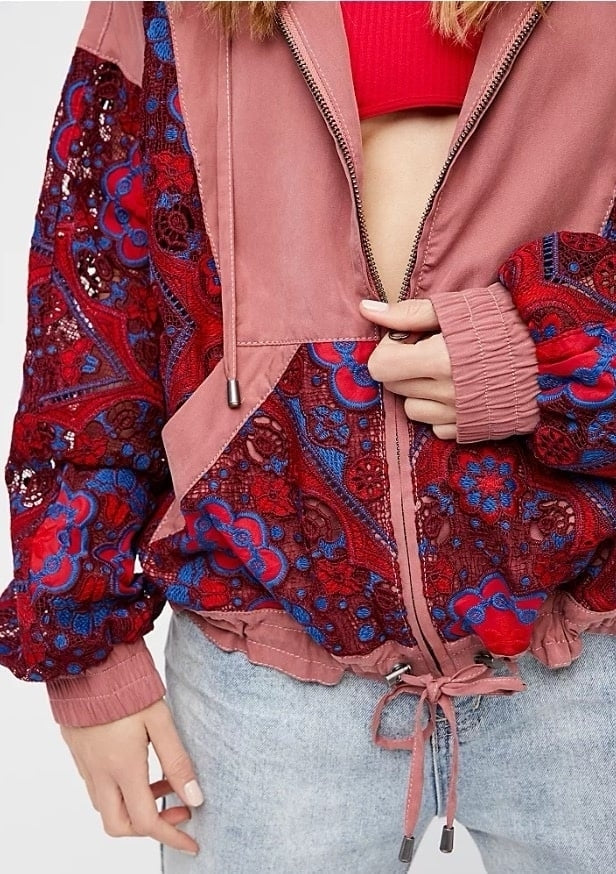 Free People Mauve/Red Embroidered Hooded Jacket - Size S