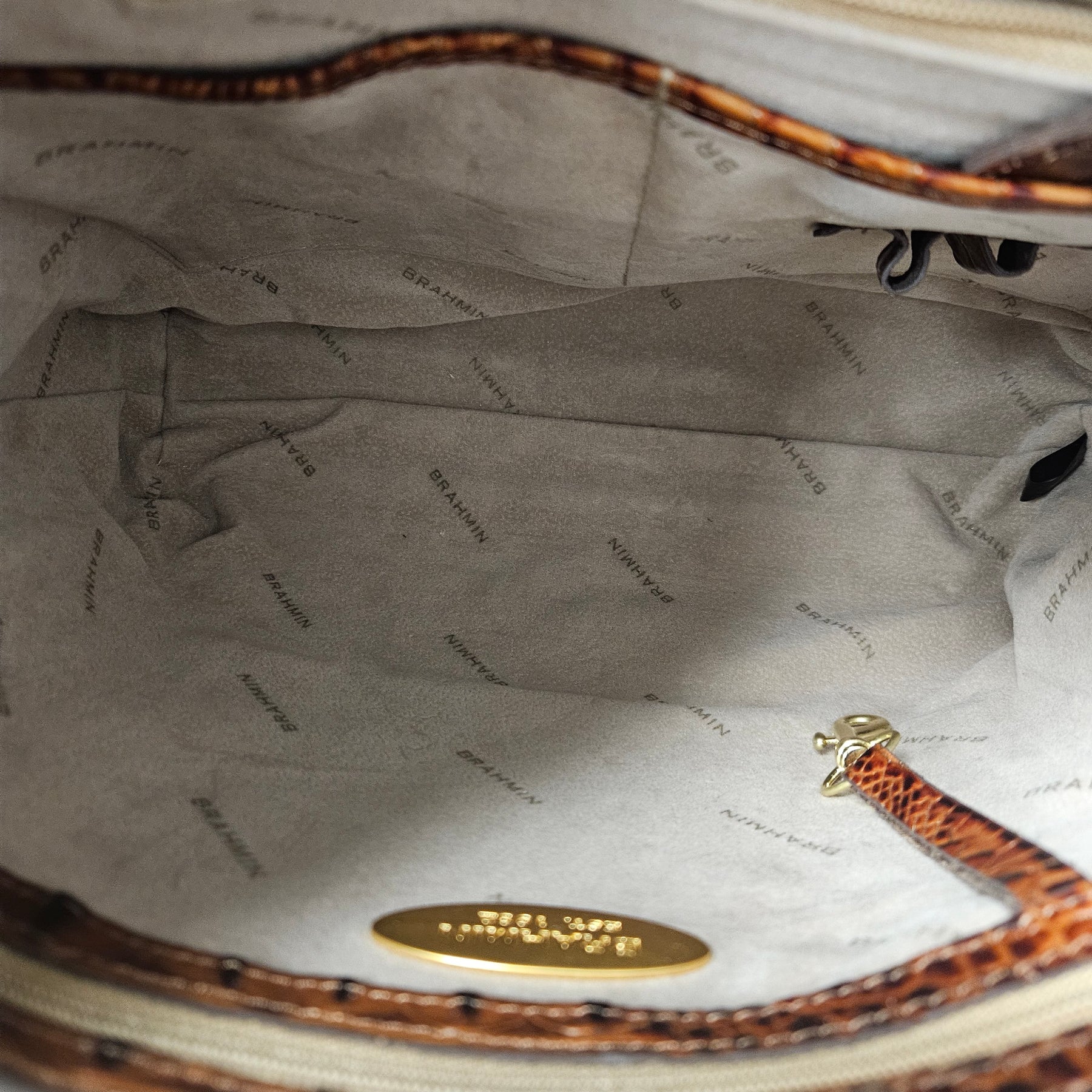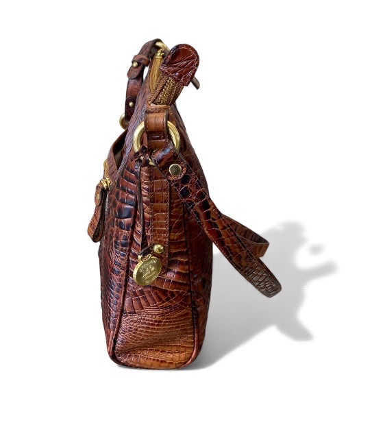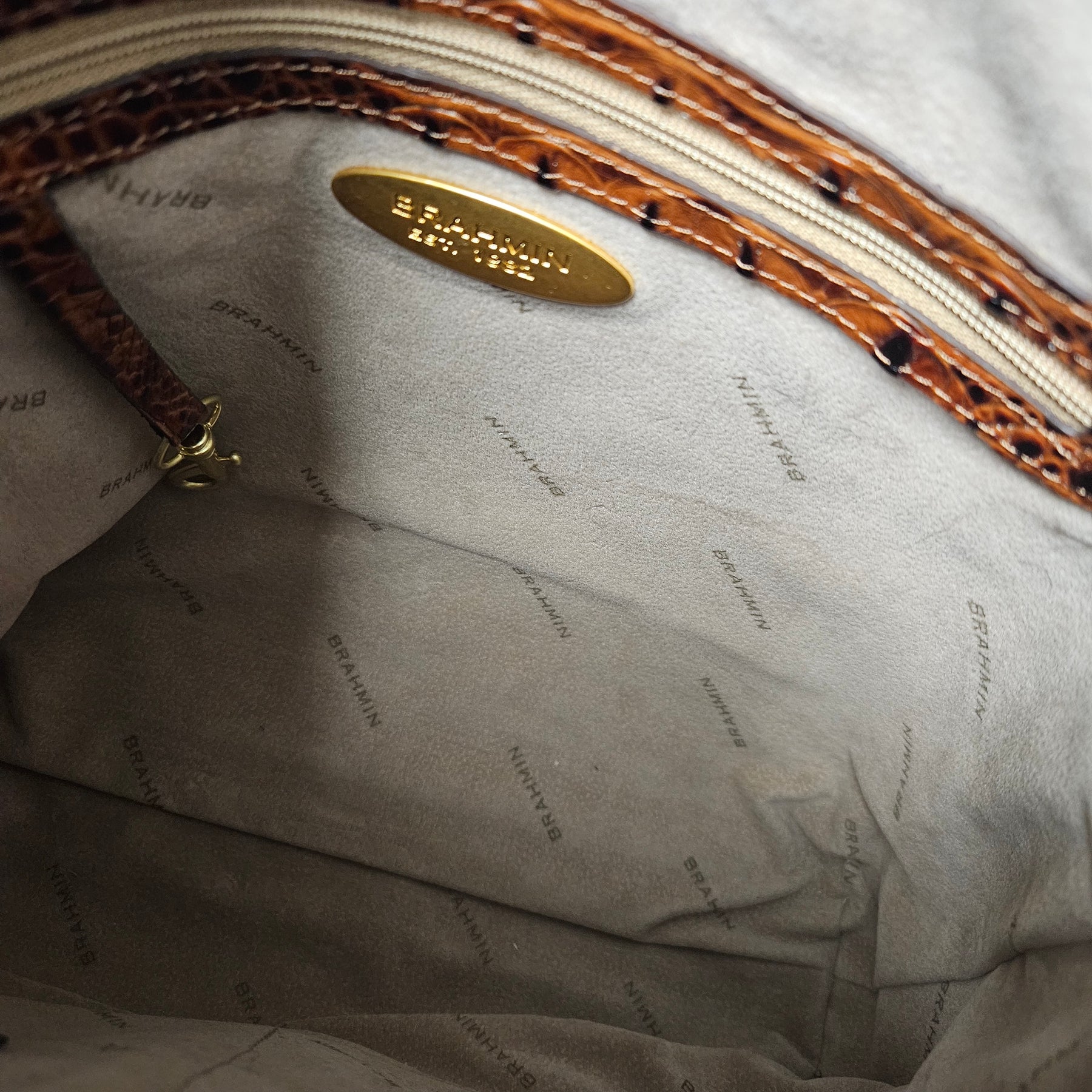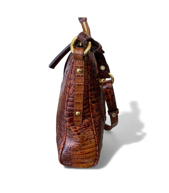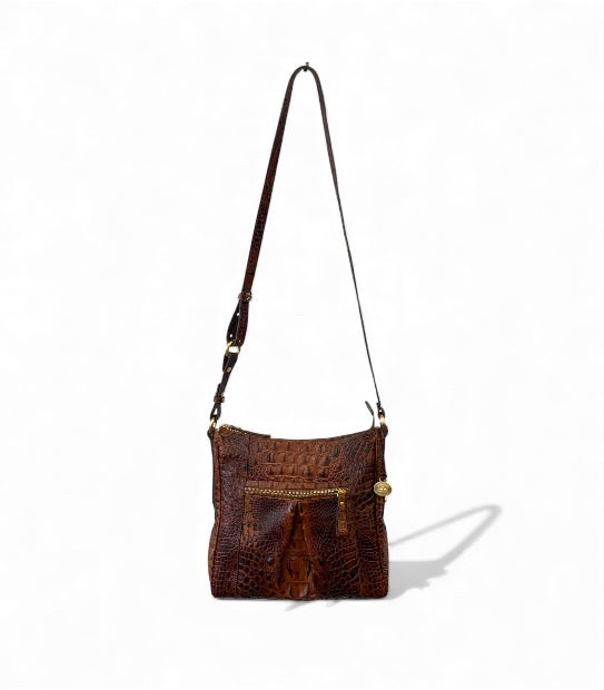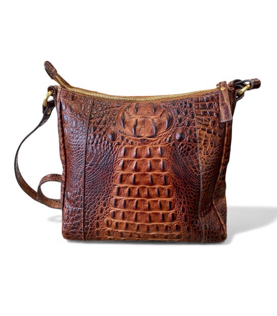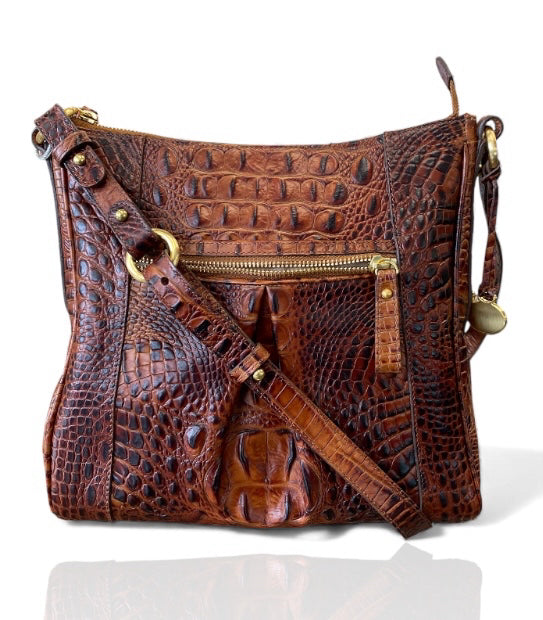 Brahmin Pecan Croc Embossed Lindy Crossbody Bag