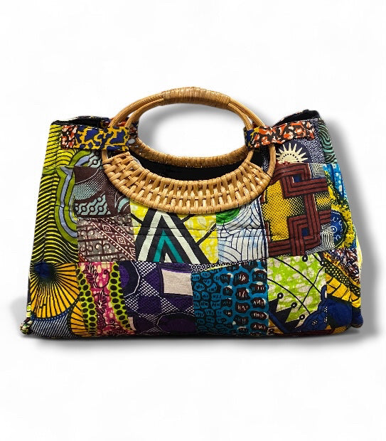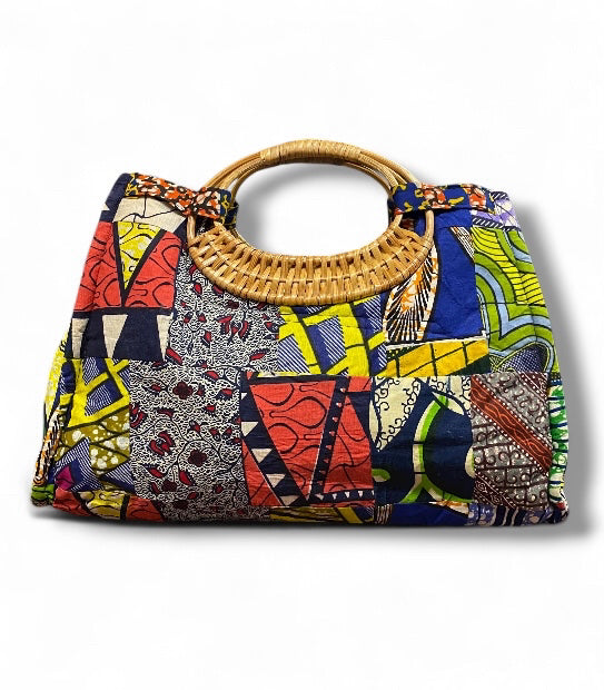Ankara Print Fabric Handbag w/ Bamboo Handles
