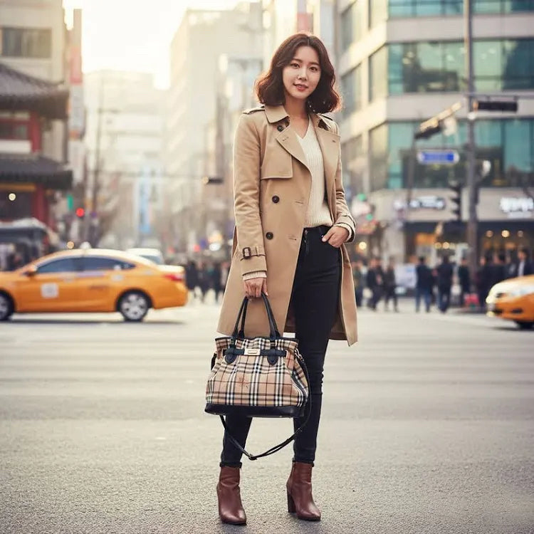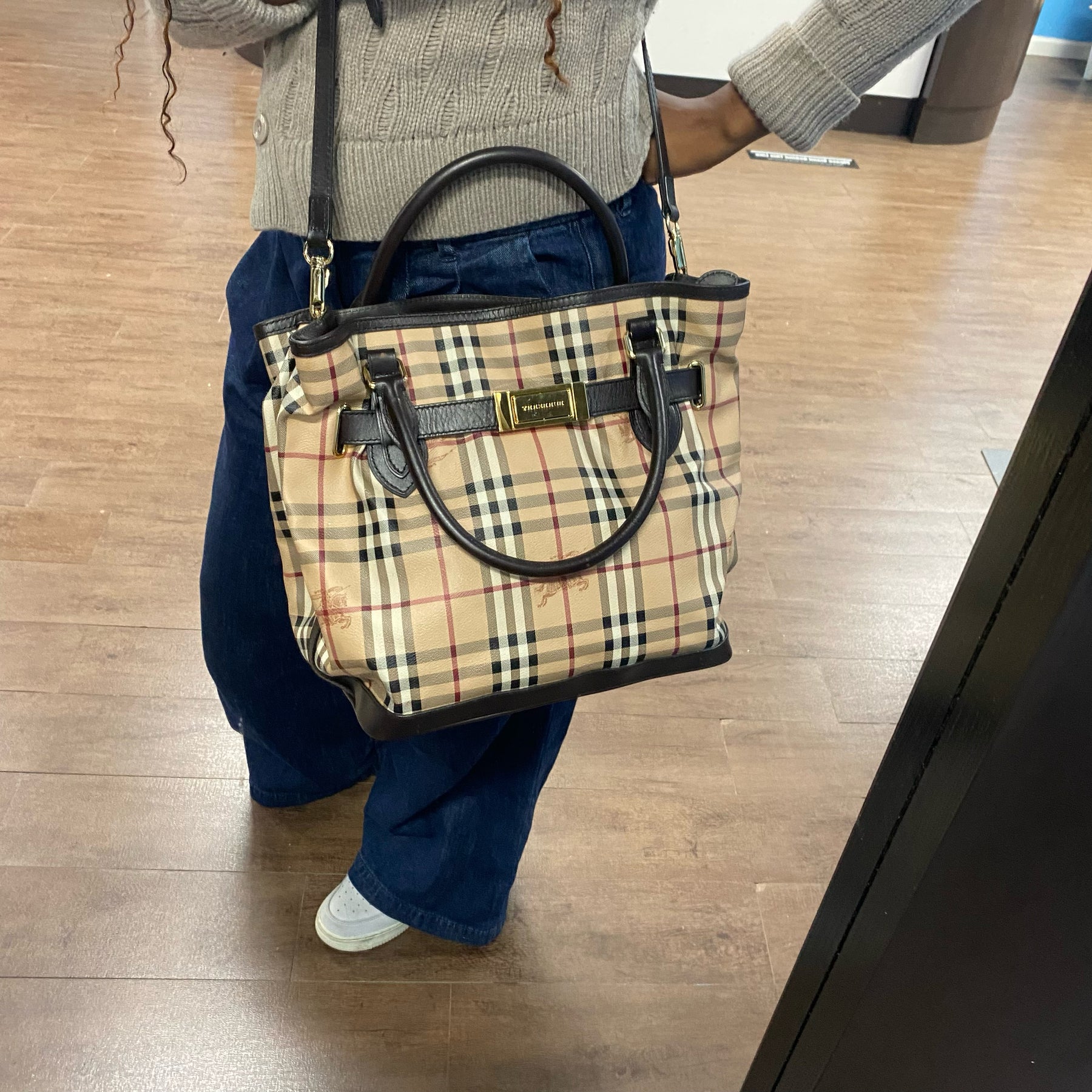 Burberry Haymarket Golderton Top Handle Tote /Adjustable and detachable crossbody strap (minor rubbing on leather near gold hardware -- see photos)
