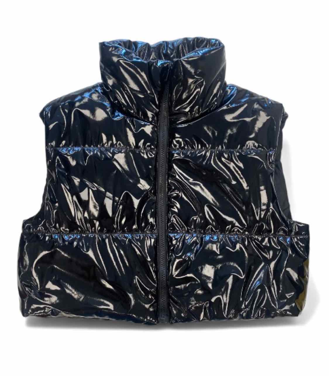Daisy Black Patent Leather Crop Puff Vest - Size S