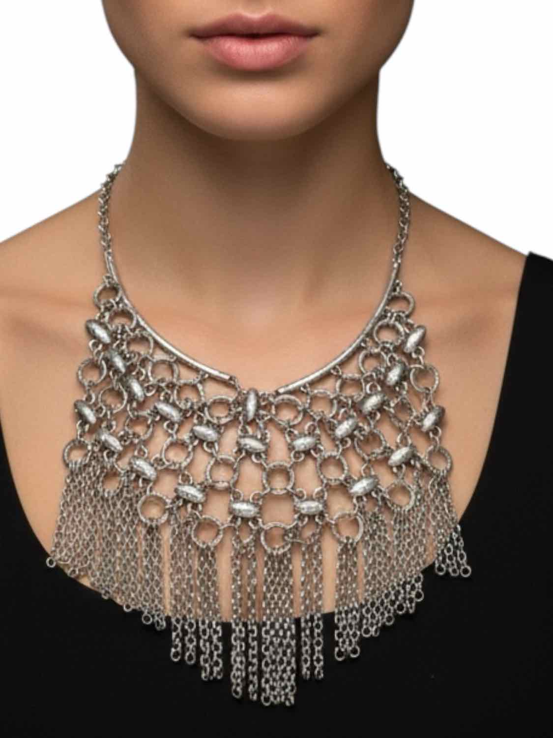 NEW w/tags Chico's Silver Tassel Link Bib Necklace