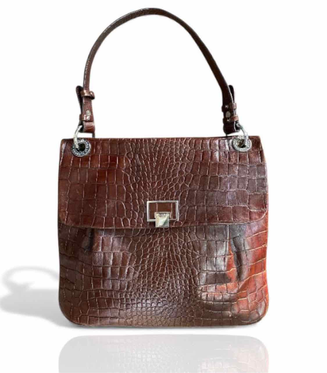 Le Tanneur Brown Croc Embossed Shoulder Bag
