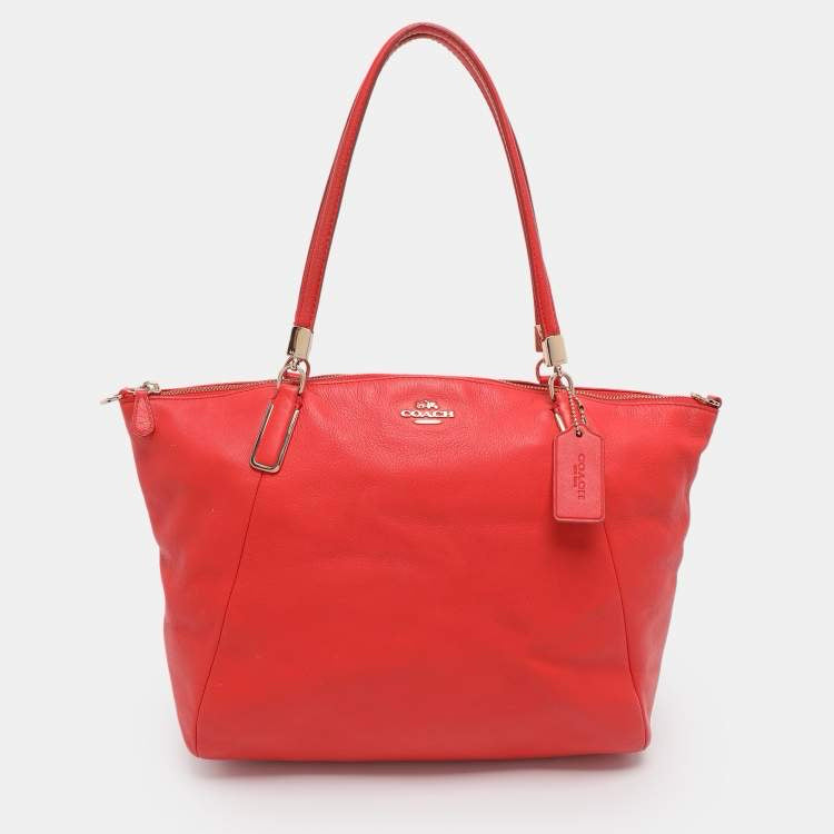 Coach Red Pebble Leather Tote w/ Crossbody Strap