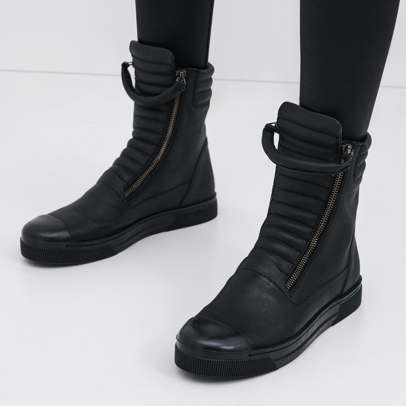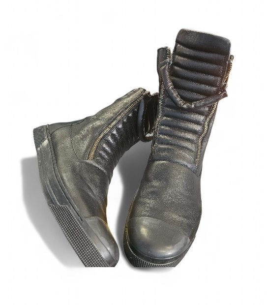 Marcella Black Vegan Leather Ribbed Zip Pull Sneaker Boot - Size 11