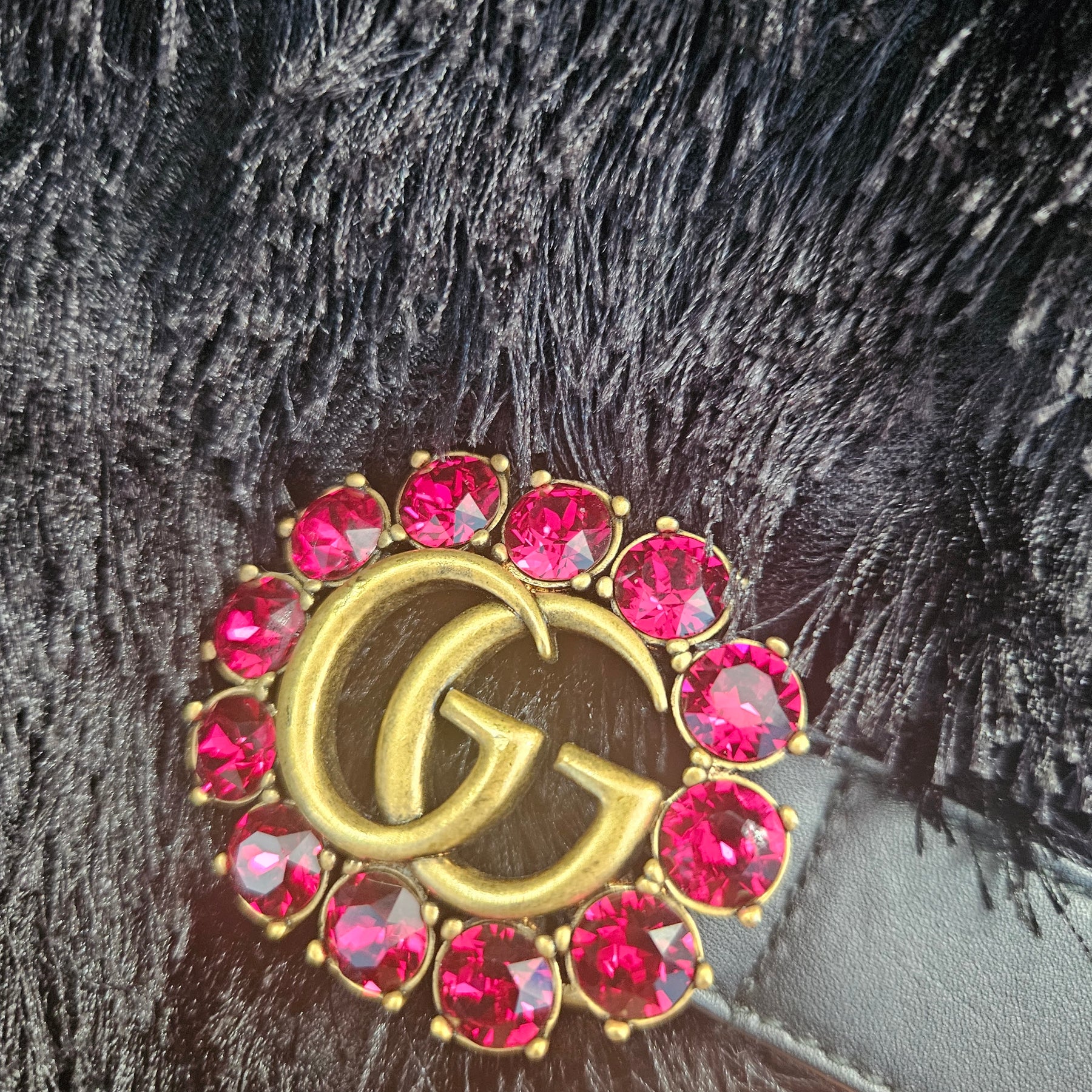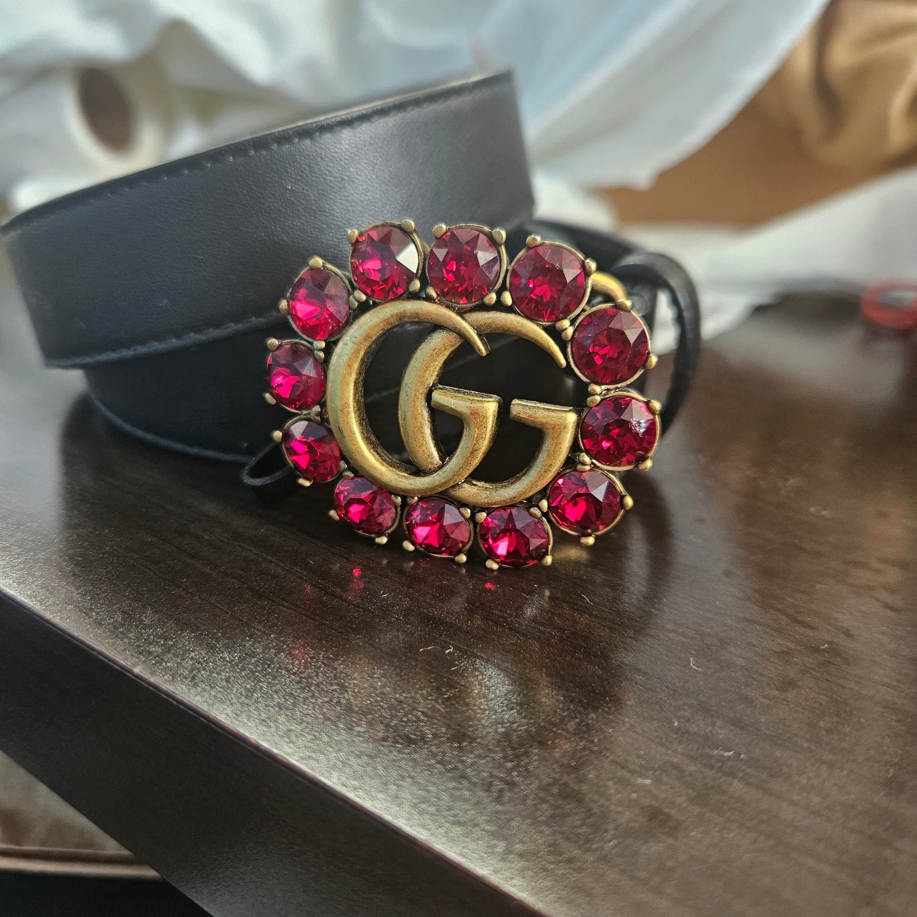 Gucci Red Crystal Black Leather Double G Belt - Size 90 (34 Inch Waist)