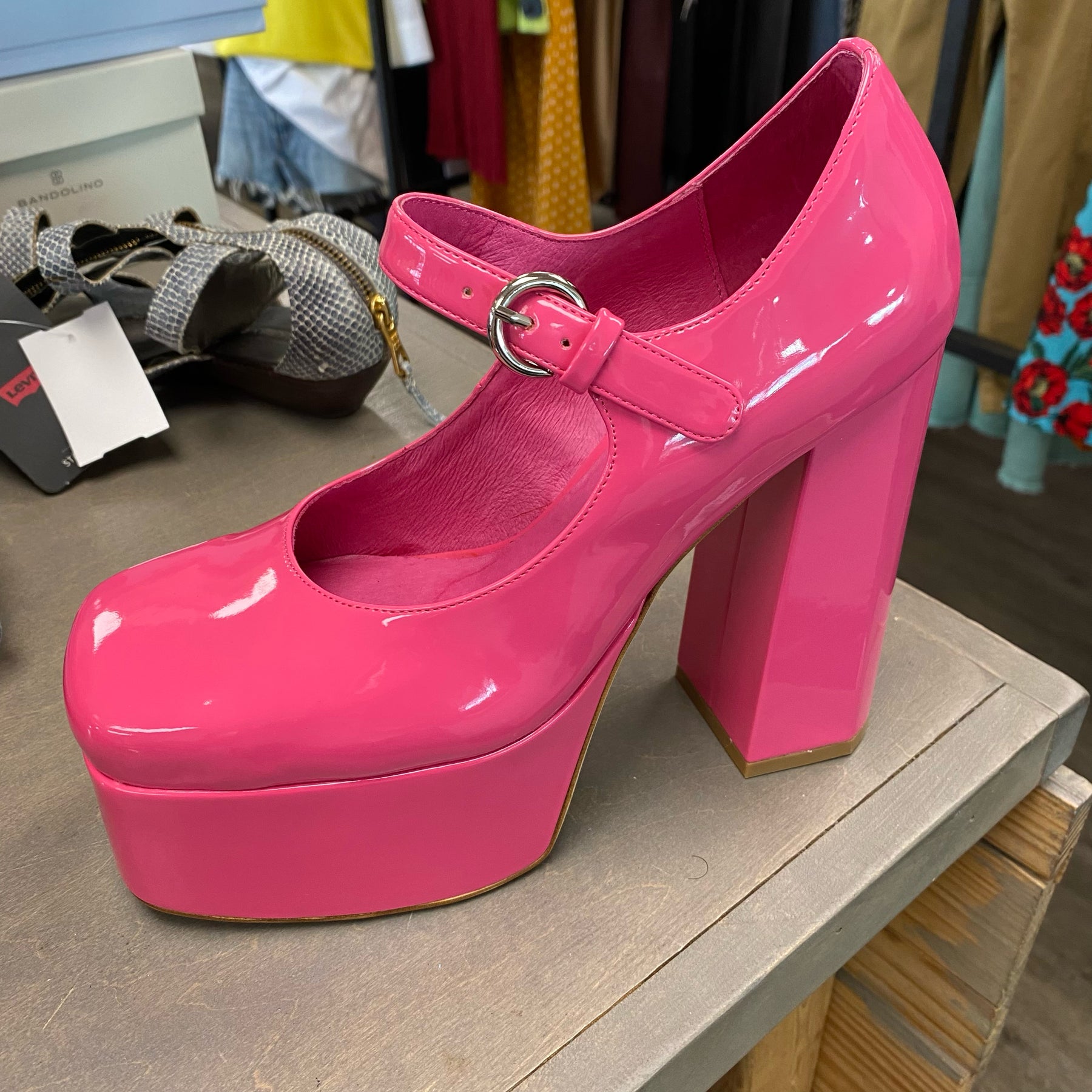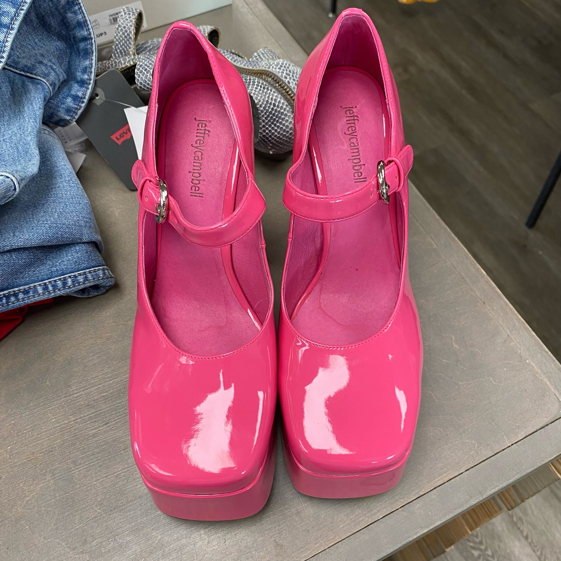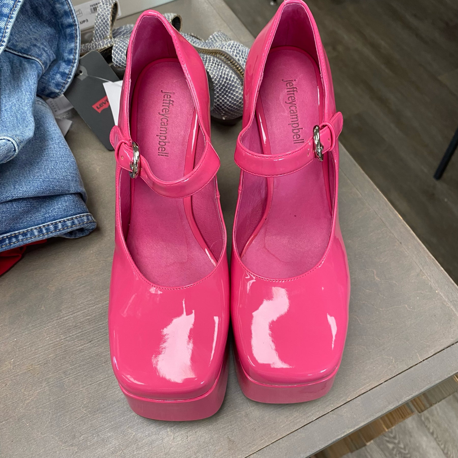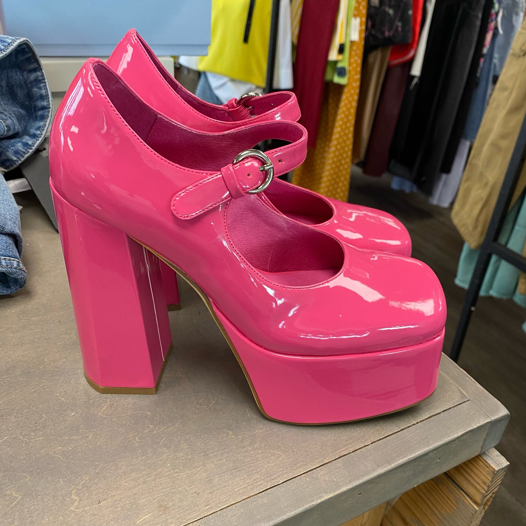 Jeffery Campbell Hot Pink 2" Platform Mary Jane Heels - Size 8.5 (see mark on heel)