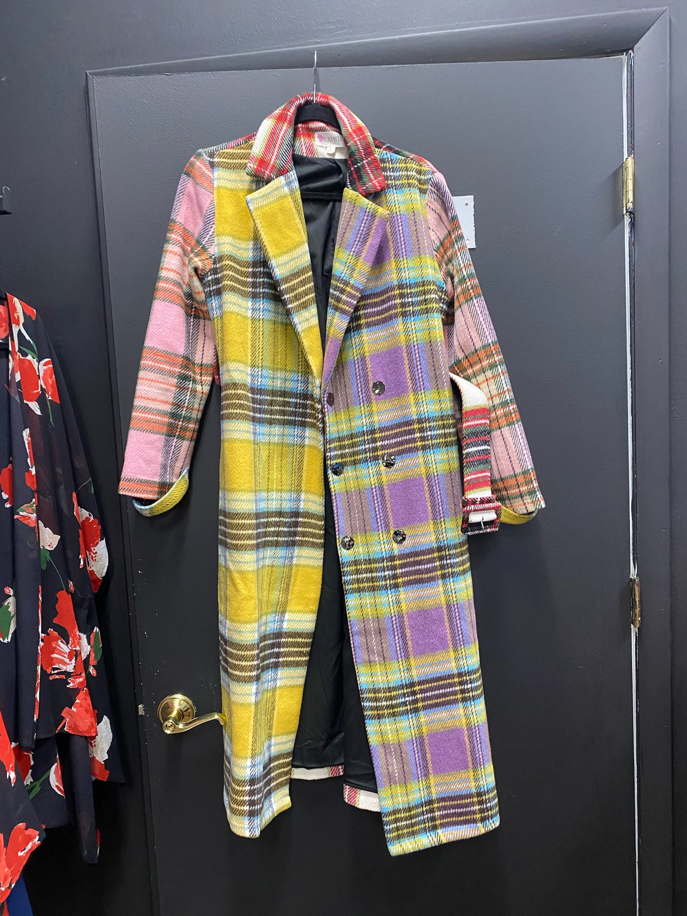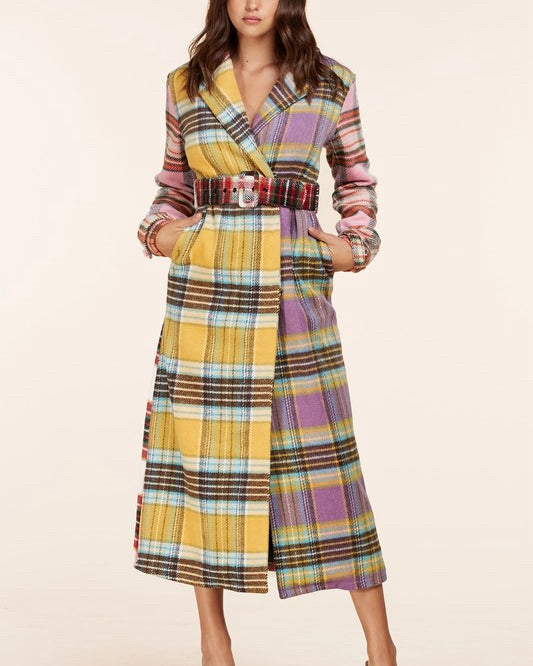 Latiste Plaid Pink/Yellow Multi Belted Trench -Size S