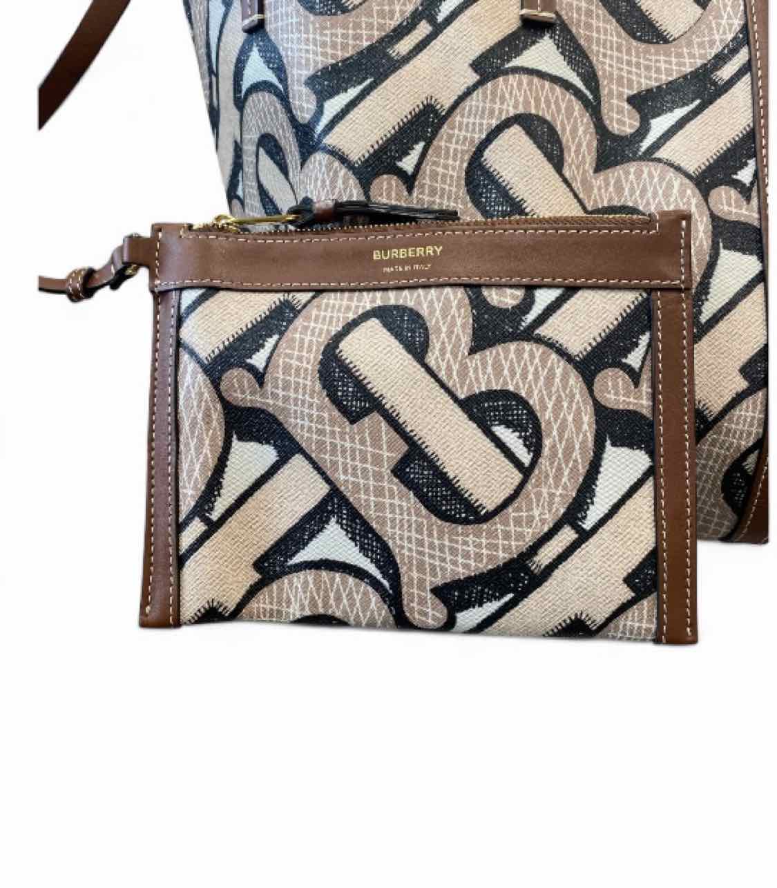 Burberry Beige Brown Black Monogram E-Canvas Tote