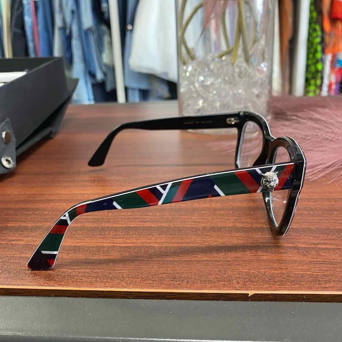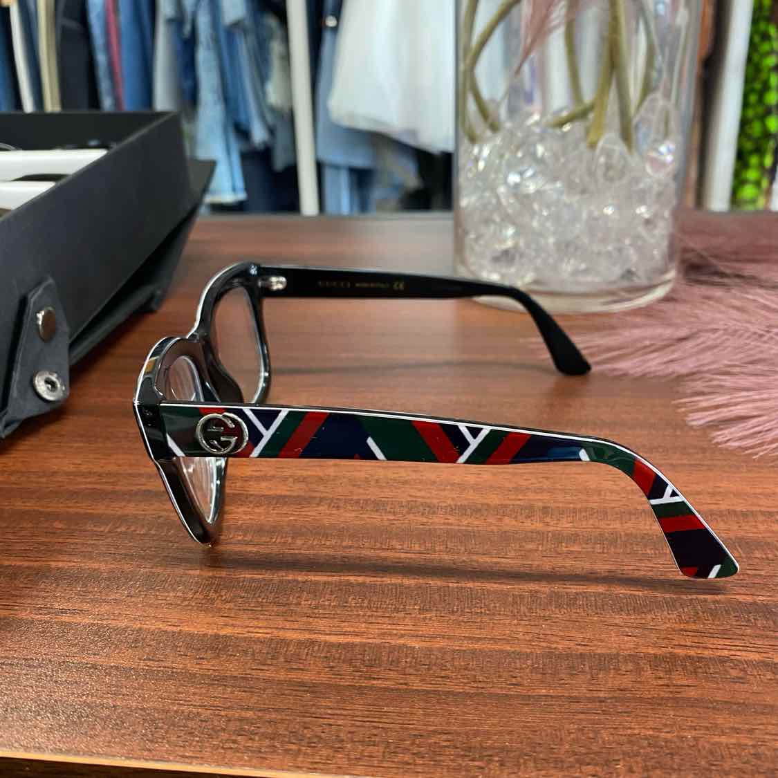Designed for versatile wear, these frames add a pop of color while maintaining timeless appeal. The lively green, red, and blue print pairs beautifully with both tailored and casual outfits, helping you stand out with confidence. The subtle Gucci branding along the temples offers a refined touch that fellow fashion enthusiasts will notice and admire, making these glasses a coveted addition to any wardrobe.